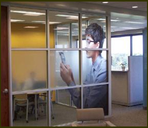 glass partitions or the inside surface of
